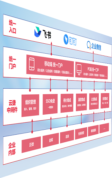 对协作平台提供支持服务,,,支持企业应用与协作平台对接,,,,包含组织同步、、、消息集成、、、、待办集成等。。。支持目前主流的协作平台:钉钉、、企微和飞书。。。